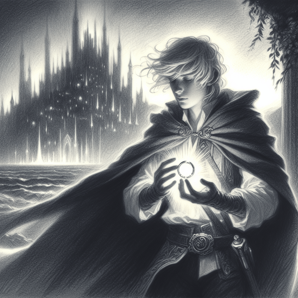 Laurent arriva enfin devant le repaire du sorcier et du troll, un sombre château aux murs couverts de lierre épineux. Le vent soufflait fort, portant avec lui des murmures inquiétants. Malgré la peur qui menaçait de l’envahir, le jeune magicien serra l’anneau magique et se concentra sur sa mission. Une lumière éblouissante jaillit soudain, enveloppant Laurent d’une aura protectrice. La voix de Mirella résonna à nouveau, l’encourageant à avancer.