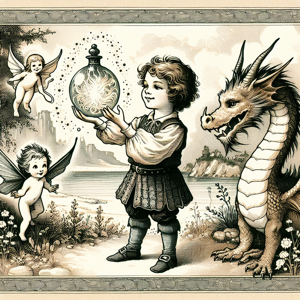 Un jour, alors qu’il se promenait sur la plage dorée, Léo rencontra un petit lutin malicieux. Le lutin, avec un sourire éclatant, tendit au prince une potion lumineuse, promettant qu’elle contenait un pouvoir extraordinaire.
