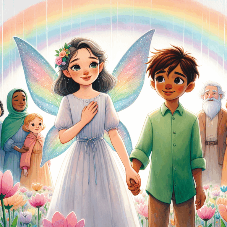 Au moment où Emma murmura son souhait à l’arbre des souhaits, une douce brise se leva, faisant chanter les feuilles comme un chœur de mille voix. L’arbre, en réponse à sa sincérité, enveloppa Emma d’une lumière chaude et réconfortante.