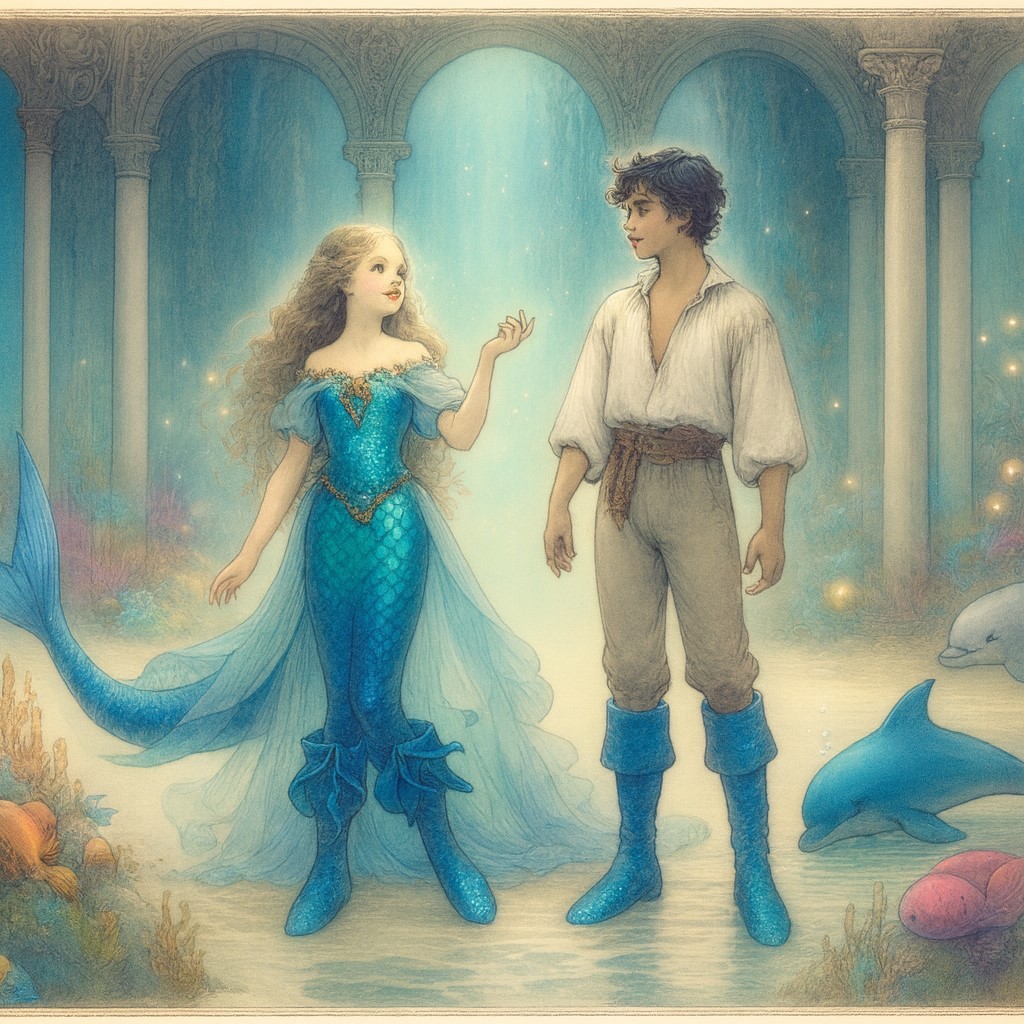 En traversant la mer, ils découvrirent un passage secret menant à un sanctuaire oublié des sirènes. Ce lieu, protégé par des enchantements anciens, était le cœur du royaume sous-marin, où la magie de l’océan était la plus pure. Là, ils rencontrèrent une vieille sirène sage, gardienne des secrets des mers. Elle leur révéla que les bottes n’étaient pas simplement un outil pour traverser des dangers, mais un symbole de confiance et de responsabilité envers le monde marin.